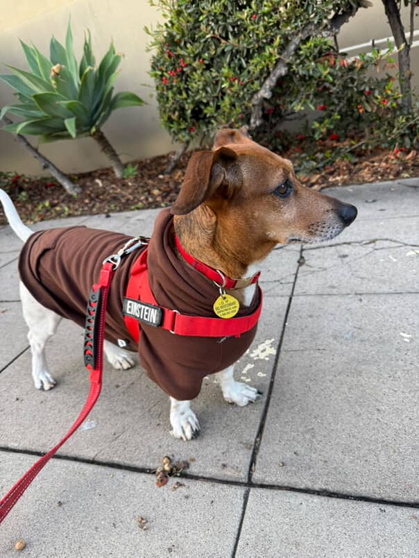 Some dogs tolerate clothes. Others refuse them entirely. This one stays out of the argument.
