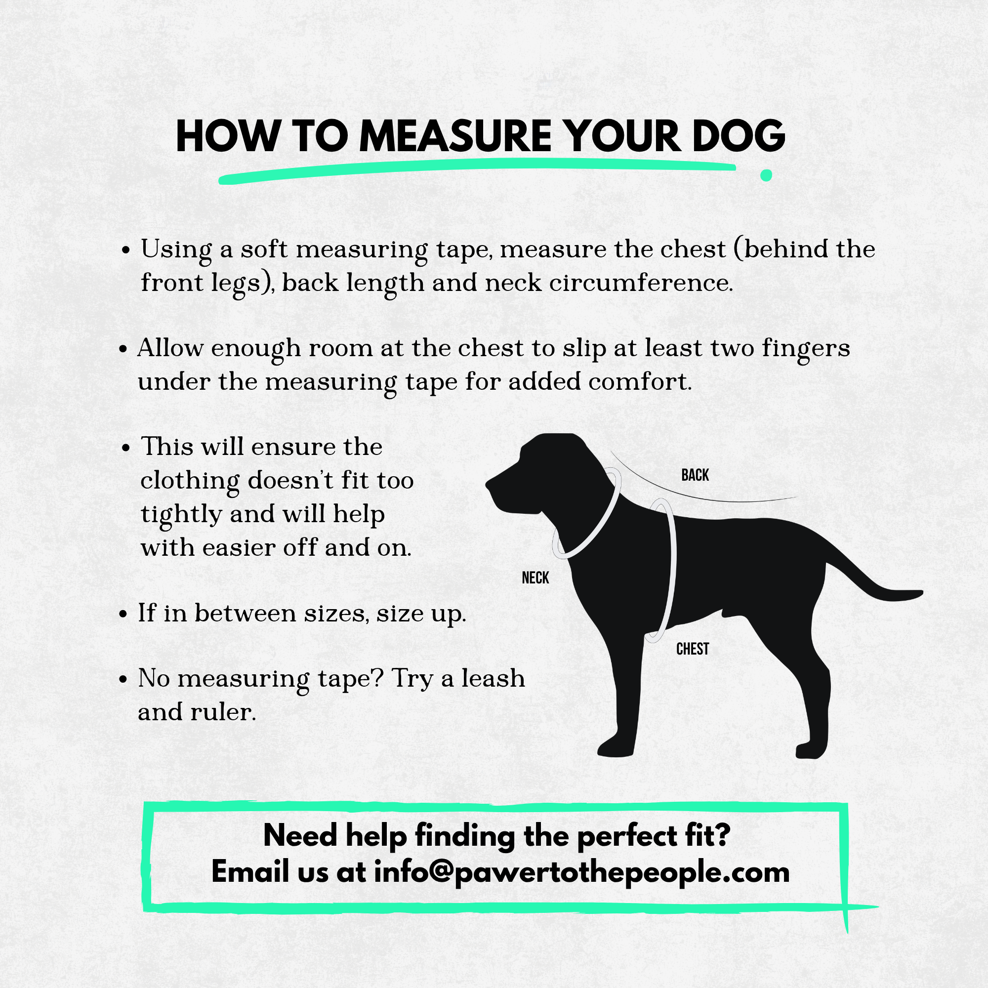 ✅ Measure before you order! Use a measuring tape for accuracy (or a leash + ruler if you’re in a pinch.)