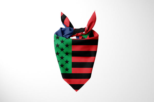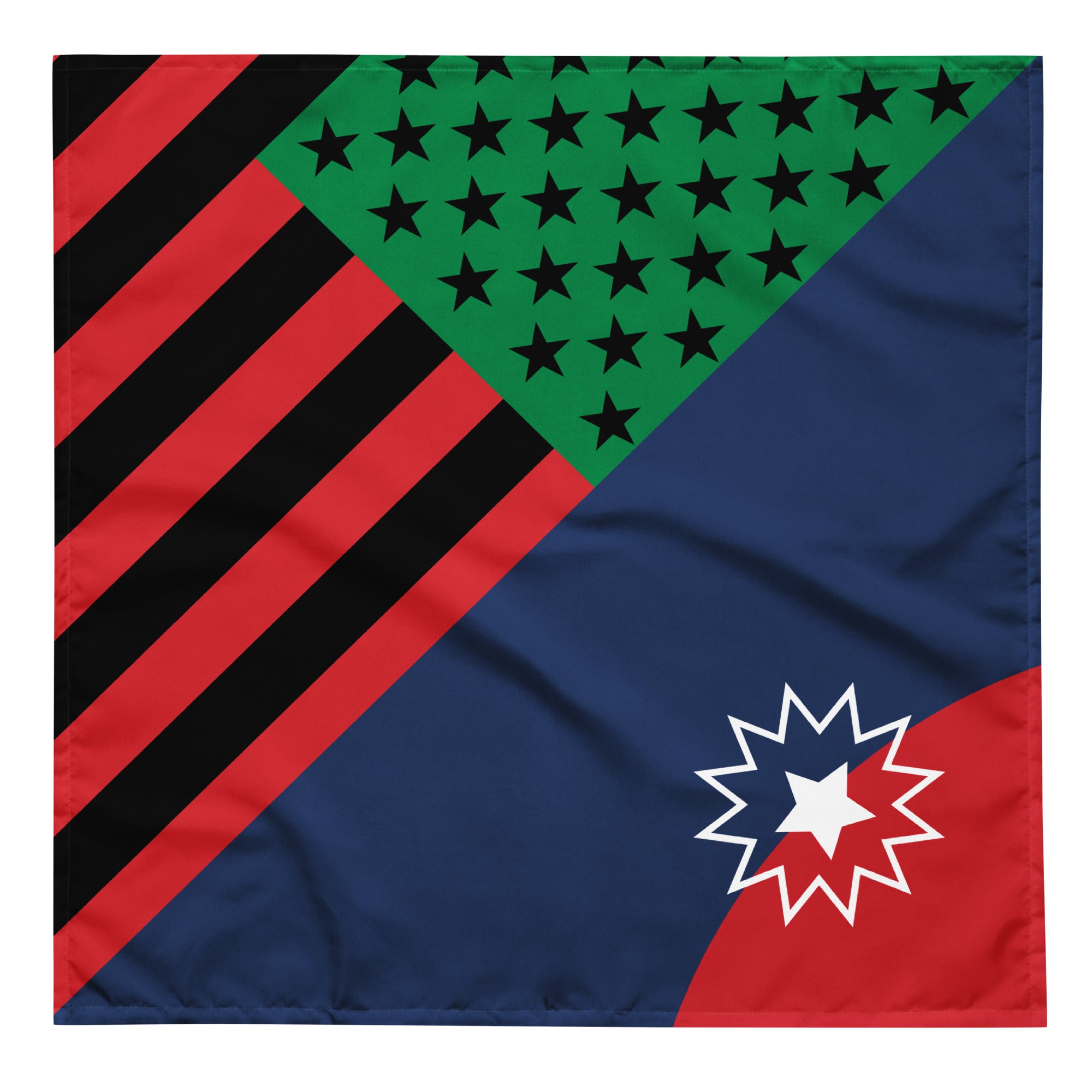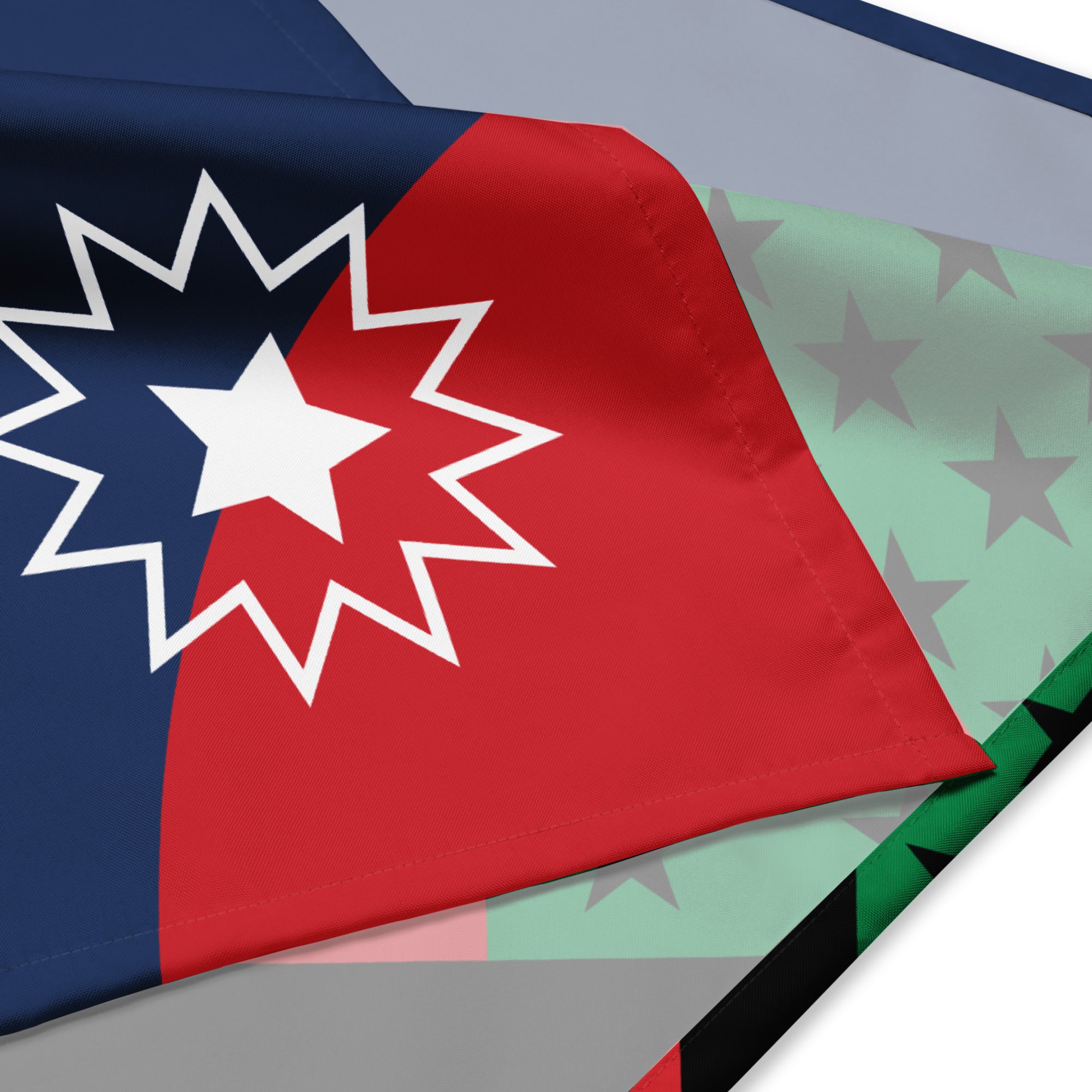 Red, green and black star-studded on one side. The Juneteenth flag on the other. This bandana is a whole celebration — of culture, of freedom, of heritage.
